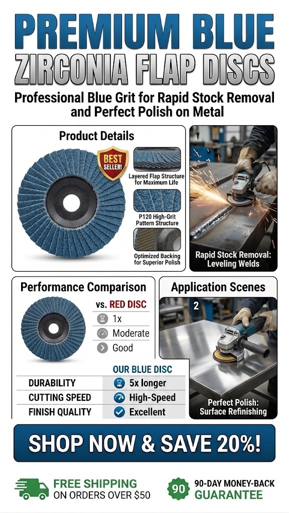 Engineered for the toughest industrial applications, our Premium Blue Zirconia Flap Discs offer the perfect balance of rapid material removal and a refined surface finish. Whether you are leveling weld beads, removing rust, or deburring heavy metal, these discs are built to outlast and outperform standard aluminum oxide alternatives.